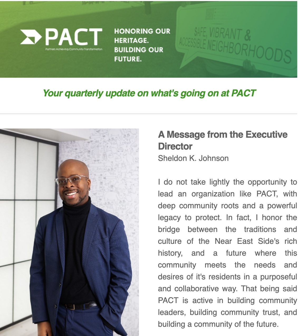 PACT is hard at work in the Near East Side community in 2025, and we're excited to bring you along. From the Taylor Avenue project, where we walked alongside residents through the REI process and the Gallery Walk, to sharing the stories, updates, and opportunities that keep our community connected, this newsletter is your window into what’s happening, what’s next, and how you can be part of it.